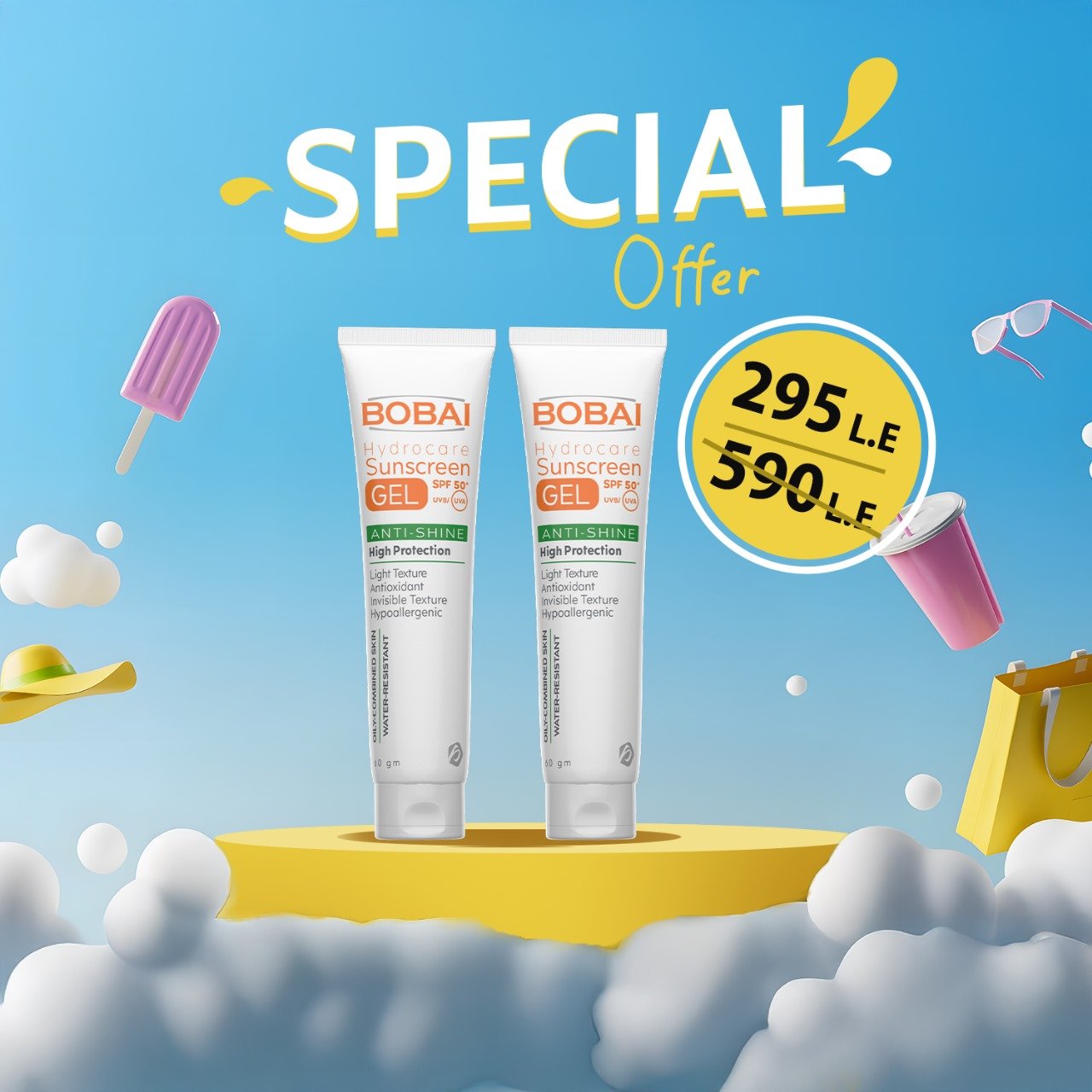 جل واقي الشمس بوباي SPF 50 60 جرام عرض 1+1 يوفر حماية فائقة من أشعة UVA/UVB بتركيبة جل خفيفة وسريعة الامتصاص. يرطب دون دهنية، يمنع أضرار الشمس، ويترك البشرة ناعمة، منتعشة، ومحمية بشكل مريح طوال اليوم.