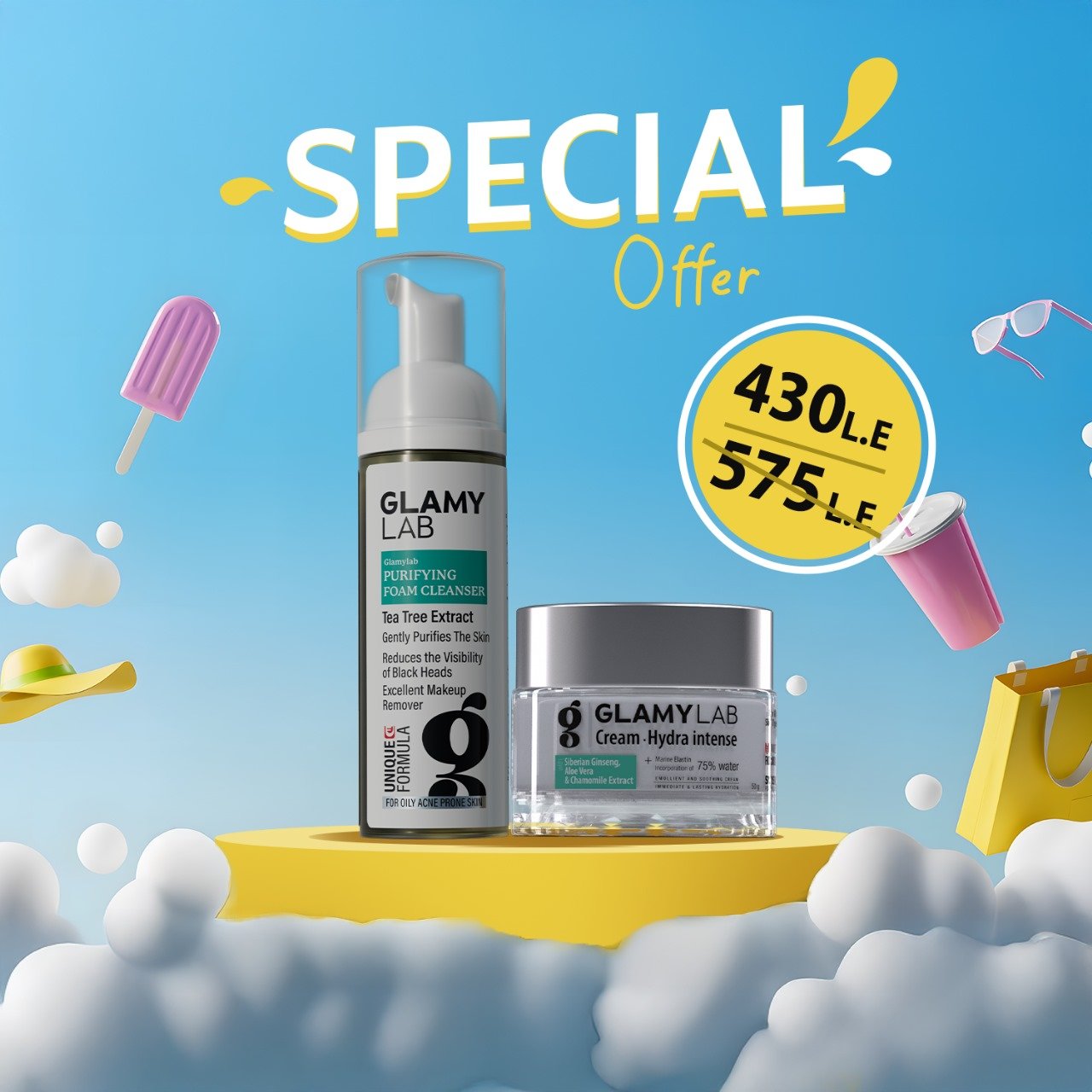 غسول رغوي من غلَامي لاب 150 مل + كريم هيدرا إنتنس من غلَامي لاب 50 جرام
