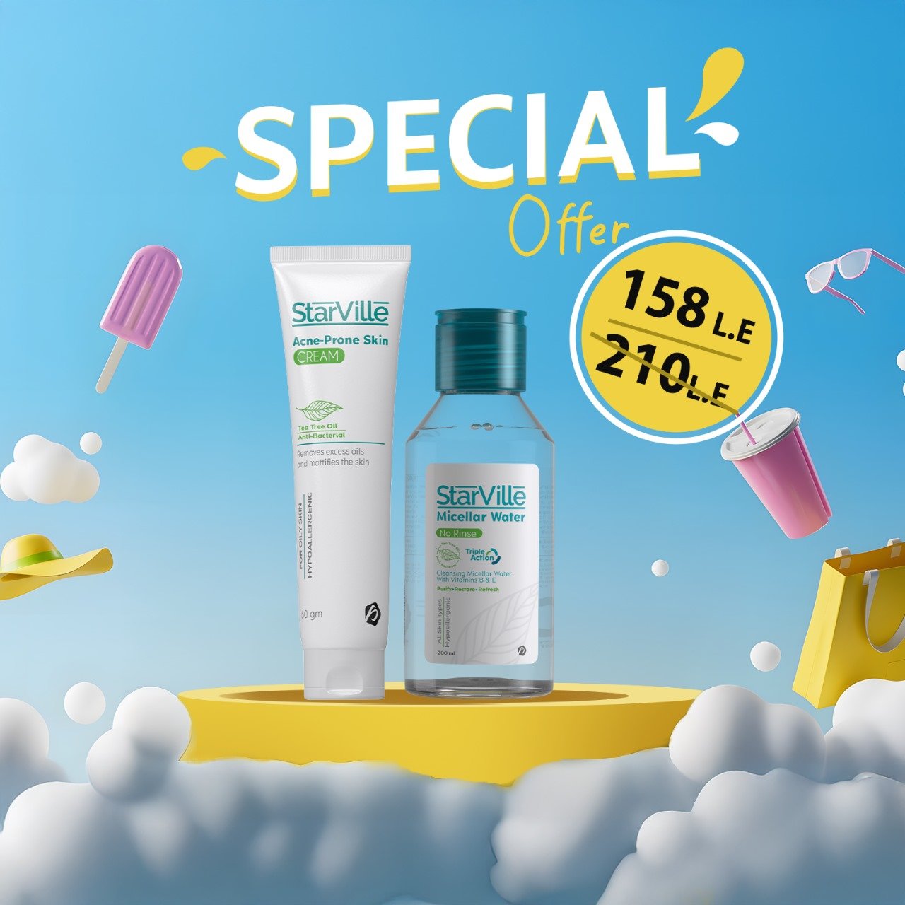 كريم ستارفيل للبشرة المعرضة لحب الشباب 60 جرام + ماء ميسيلار ستارفيل 200 مل