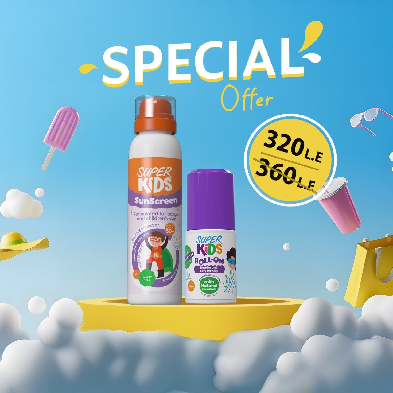 لوسيون واقي شمس للأطفال سوبر كيدز 200 مل + مزيل عرق رول أون للأطفال سوبر كيدز 30 مل