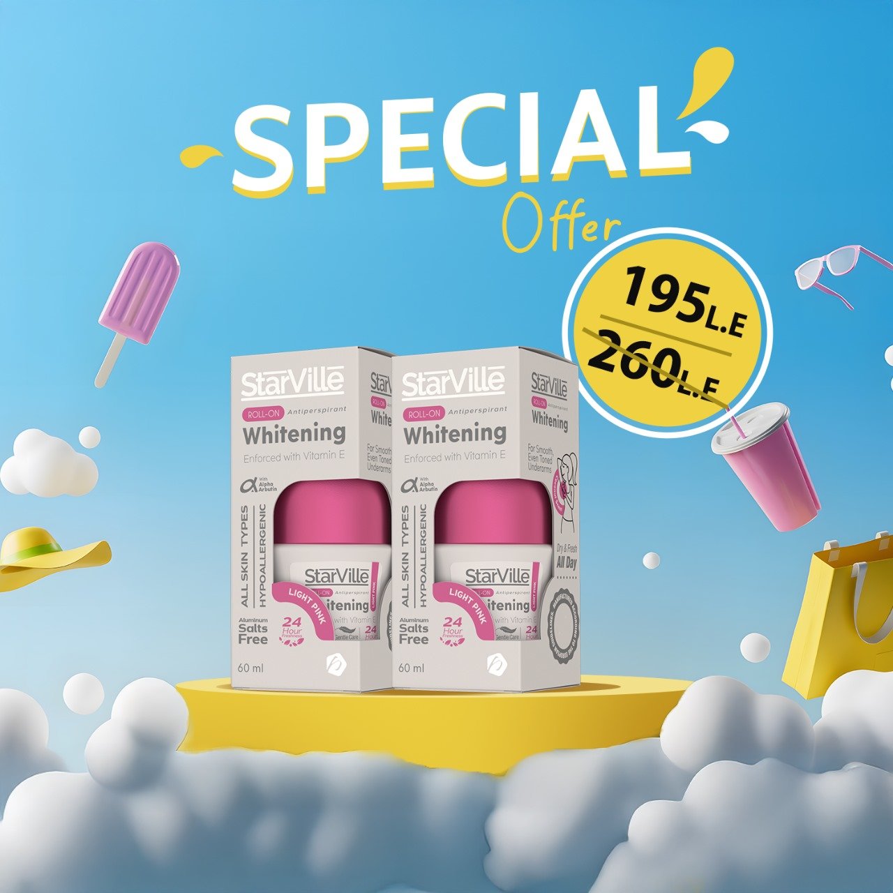 مزيل عرق ستارفيل المُبيض بجوز الهند، 60 مل، عبوة من 1+1، يُفتّح بشرة الإبطين بلطف، مع انتعاش يدوم طوال اليوم، وتحكم في الرائحة. غني بمستخلص جوز الهند، يُهدئ البشرة ويُغذيها، ويتركها ناعمة وملساء، وموحدة اللون.