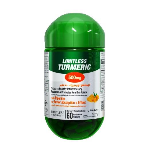 مكمل غذائي طبيعي من ليميتلس تورميريك، 60 كبسولة، مصمم لدعم الصحة العامة والعافية. غني بالكركمين، يساعد على تقليل الالتهابات، ويعزز المناعة، ويدعم صحة المفاصل والجهاز الهضمي، مما يمنحك شعوراً بالنشاط والتوازن.